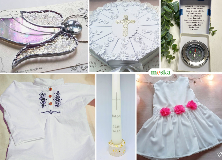 A keresztelő így lesz igazán kerek: szertartás, család, öröm és figyelmesség. Az ajándék pedig akkor talál be igazán, ha nemcsak aznapra szól, hanem később is helye van a mindennapokban – legyen az ruha, meghívó vagy egy apró kézműves tárgy, amit szeretettel adsz tovább.
